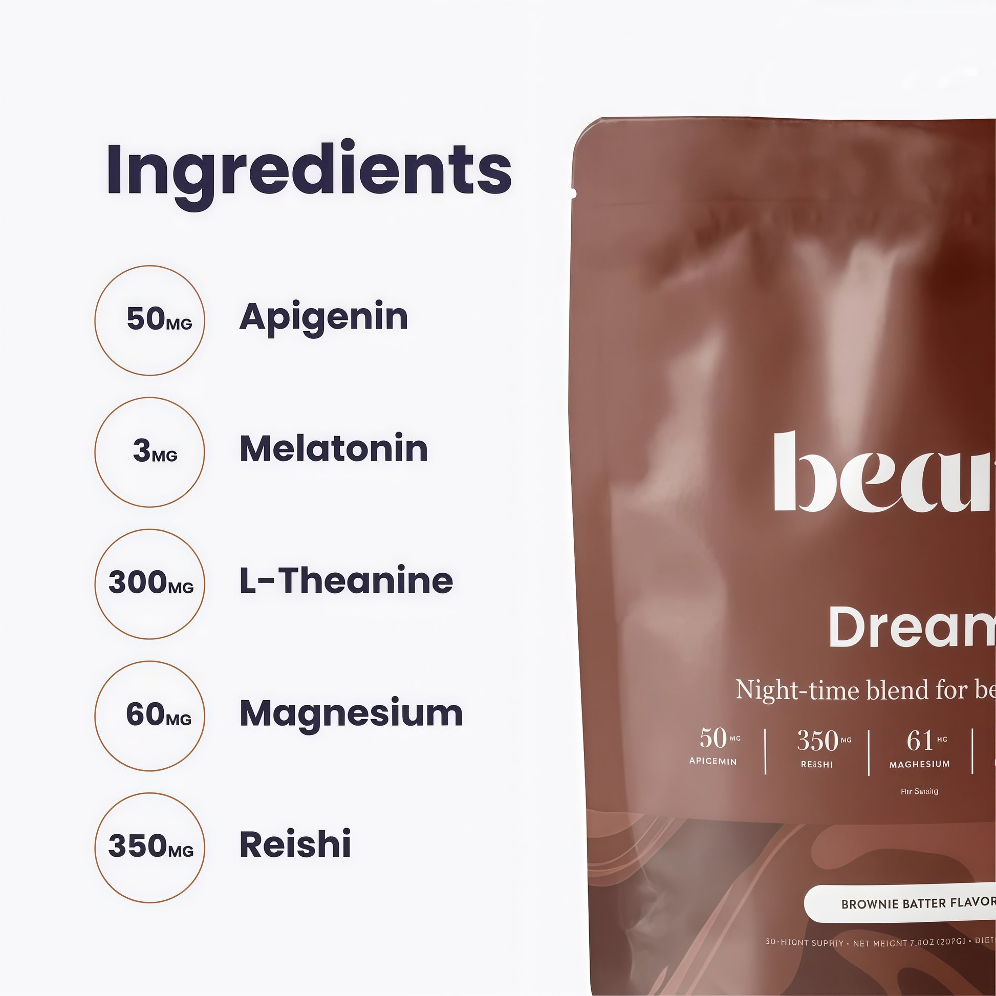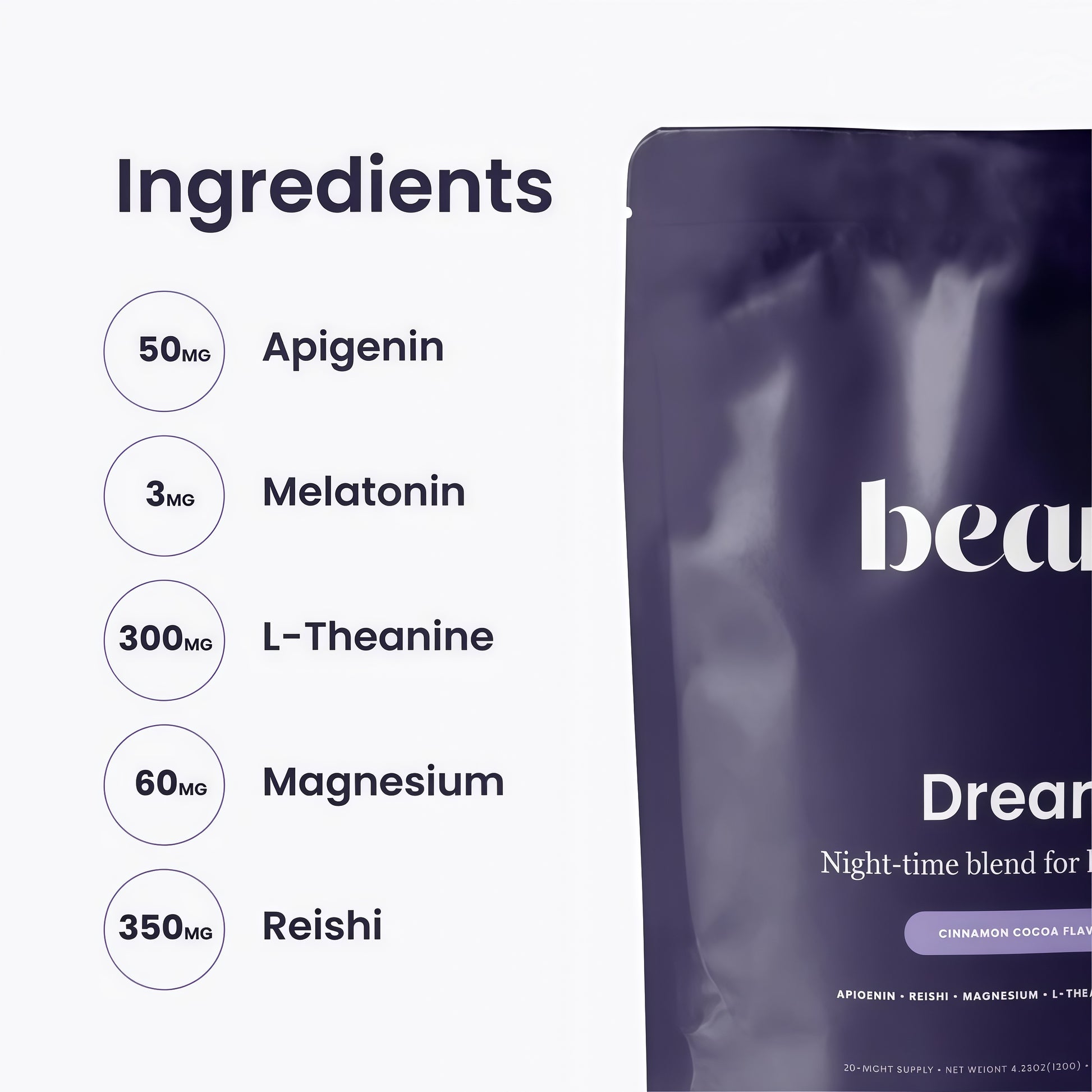 - A SOOTHING NIGHTTIME BLEND – Beam Dream Sleep Powder features a carefully selected blend of Magnesium, Melatonin, L-Theanine, and Apigenin, perfect for complementing your evening wind-down routine.